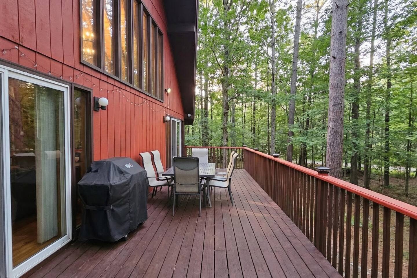 🏡 KITCHEN & DINING: - Fully equipped kitchen with all essentials, including children's and toddler's dishware. - Modern appliances: Air fryer oven, stove, microwave, and dishwasher. - Dining table comfortably seats six guests. - Drip coffee maker, hand drip set, french press, bean glider, tea maker, electric kettle, rice cooker and toaster. - Complete set of cookware, kitchen utensils, dishes, and glassware. 🔥 LIVING & ENTERTAINTMENT: - Open-concept living room with soaring cathedral ceilings and expansive windows. - Cozy wood-burning fireplace for warm gatherings. - High-speed Full Spectrum Wi-Fi for seamless connectivity. - Comfortable seating: Large modern sofa, Adirondack style chairs, and ottomans. - Assortment of board games for family fun. 🛏️ BEDROOMS & WELLNESS SPACES: - KING BED ROOM in the spacious loft Retreat to this serene memory foam king bedroom, thoughtfully designed to offer both comfort and functionality. The room features a dedicated office and reading area, perfect for relaxation or productivity. Additionally, enhance your well-being with a yoga mat, foam roller, singing bowl, and meditation cushion, inviting you to unwind and find your inner peace. - QUEEN BED ROOM on the main floor Experience the charm of a spacious Adirondack-style room, highlighted by a beautifully crafted cedar wood queen bed frame. This inviting space provides a comfortable sleeping area for a restful night's sleep. The room is thoughtfully equipped with a closet and dresser to accommodate your belongings, along with a wireless vacuum for your convenience, ensuring it feels just like home. - TWO TWIN BEDS on the main floor This cozy second bedroom features two comfortable twin beds, making it an ideal space for children or guests. Complete with a Smart TV, it offers entertainment options to keep everyone engaged and happy during their stay. 🛁 BATHROOM & LAUNDRY: - Luxurious bathroom featuring a rainfall shower head. - Luxury robes(2 sets) – provided for the ice barrel cold therapy experience. - Convenient in-unit washer and dryer. - Hair dryer, shampoo, body soap, 2 sets of towels & toiletries provided. - Quartz sink vanity with ample storage. 🌲 OUTDOOR & COMMUNITY AMENITIES: - Ice barrel (cold plunge) – Refresh and reset in nature. - Hot tub: a brand new hot tub with romantic string lights surrounded by (All seasons opens!) - Outdoor fire pit & compliment s'more kit. - Gas grill for outdoor cooking on the deck. - Access to the Au Sable Acres Pavilion and lake Eaton . - Access to community tennis courts. - Lake Eaton: Ausable Acres lake with diverse fishing (trout, bass, perch, salmon) and picnic facilities. - Access to scenic hiking trails within the Au Sable Acres community. 🚗 PARKING & ACCESIBILITIES: - On-site parking lot available. - Snow plowing provided for winter convenience. - Four-wheel or all-wheel drive is highly recommended, especially during winter.